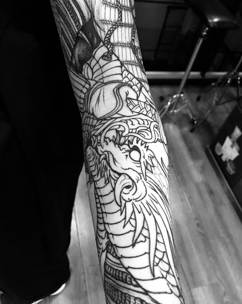 当前位置: 首页 >浙江省杭州市纹身店-异绣堂纹身工作室纹身图案>鬼武士花臂纹身图片_手臂手部新传统花臂纹身图案