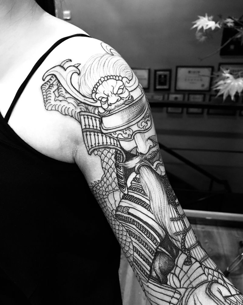鬼武士花臂纹身图片_手臂手部新传统花臂纹身图案