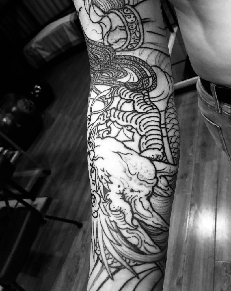 当前位置: 首页 >浙江省杭州市纹身店-异绣堂纹身工作室纹身图案>不动降龙纹身图片_手臂手部新传统纹身图案