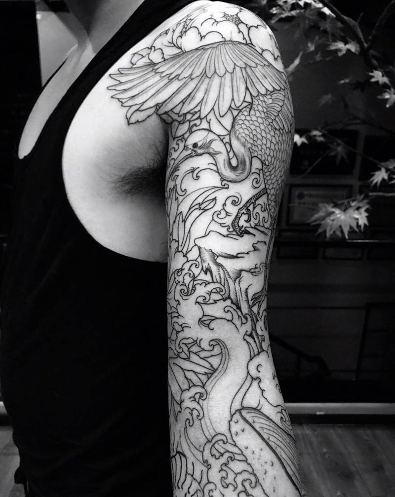 一个花臂诞生纹身图片_手臂新传统花臂纹身图案