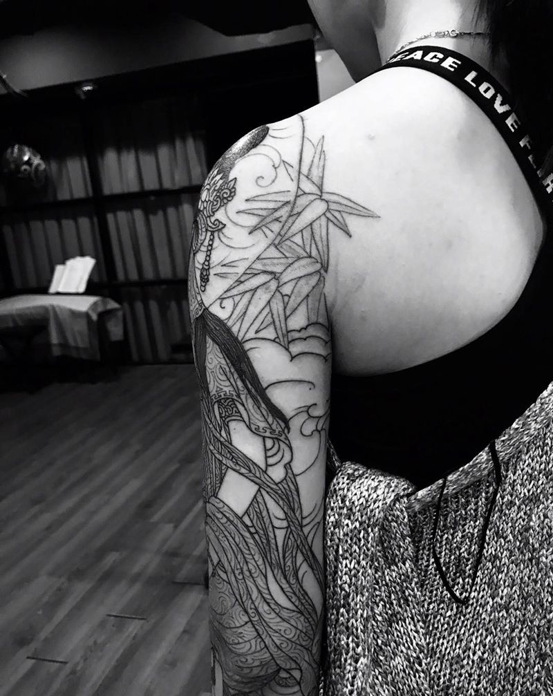 当前位置: 首页 >浙江省杭州市纹身店-异绣堂纹身工作室纹身图案>水月观音纹身图片_花臂观音佛教题材纹身图案