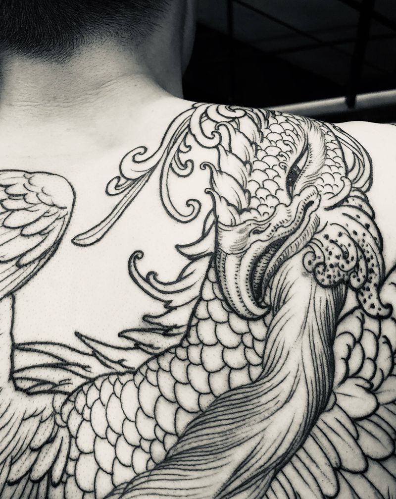 当前位置: 首页 >浙江省杭州市纹身店-异绣堂纹身工作室纹身图案>凤纹身图片_臀部背部新传统凤凰纹身图案