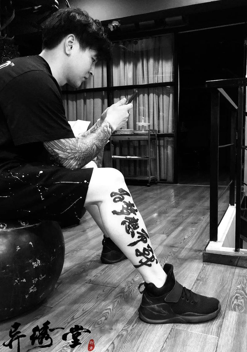 当前位置: 首页 >浙江省杭州市纹身店-异绣堂纹身工作室纹身图案>书法纹身纹身图片_腿部水墨小腿纹身图案
