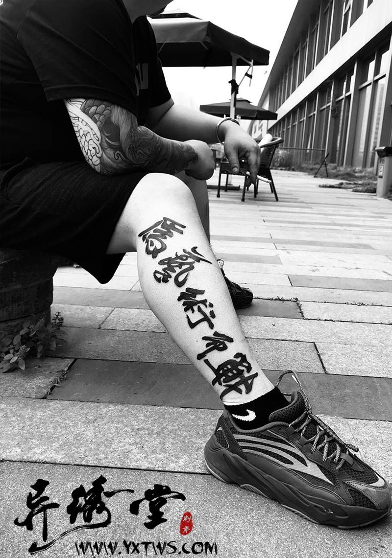 当前位置: 首页 >浙江省杭州市纹身店-异绣堂纹身工作室纹身图案>书法纹身纹身图片_腿部水墨小腿纹身图案