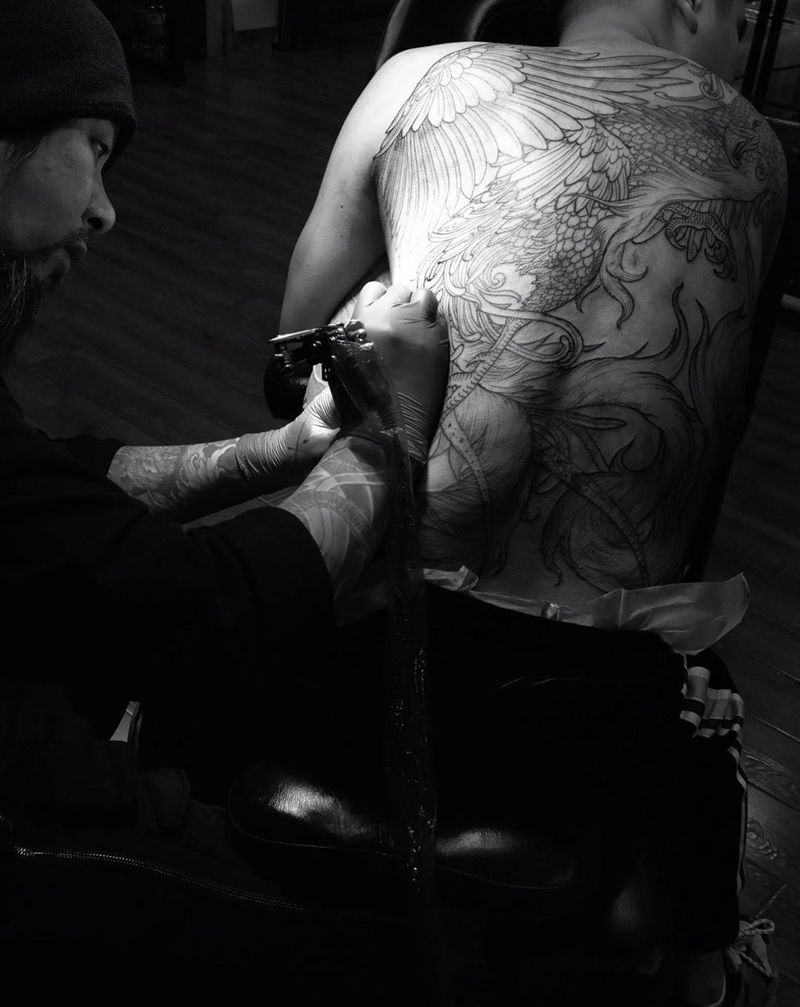 当前位置: 首页 >浙江省杭州市纹身店-异绣堂纹身工作室纹身图案>凤凰纹身纹身图片_背部新传统凤凰满背纹身图案