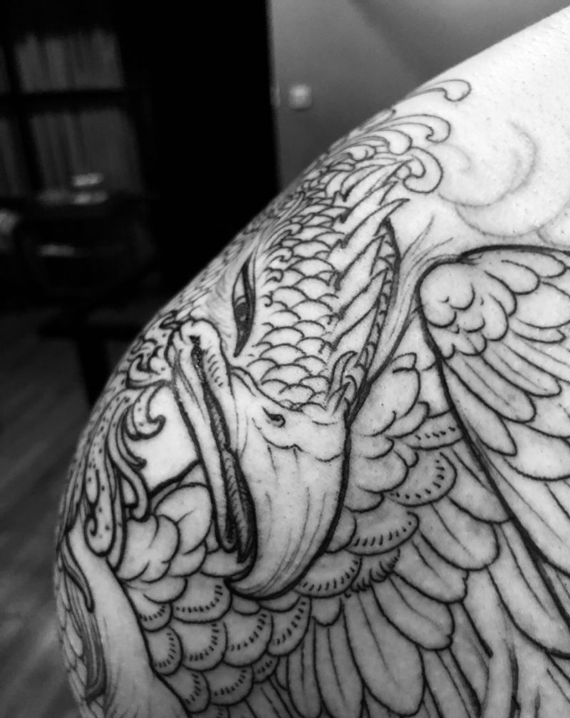 当前位置: 首页 >浙江省杭州市纹身店-异绣堂纹身工作室纹身图案>凤凰传奇纹身图片_手臂胸部新传统凤凰花臂纹身图案