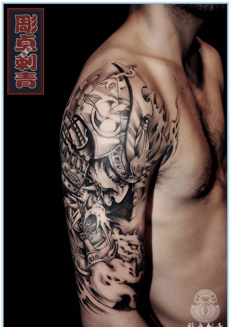 鬼武士纹身图片_成品手臂传统写实鬼神鬼武士纹身图案