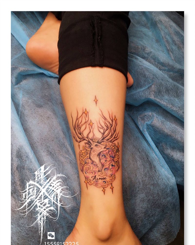 当前位置: 首页 >浙江省杭州市纹身店-雕卓刺青纹身图案>麋鹿纹身图片_脚部腿部小清新鹿纹身图案