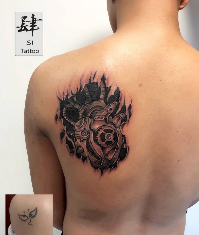 黑灰满背纹身图案