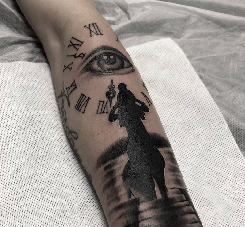 当前位置: 首页 >浙江省杭州市纹身店-渡山刺青纹身图案>写实纹身图片_手臂欧美写实纹身图案