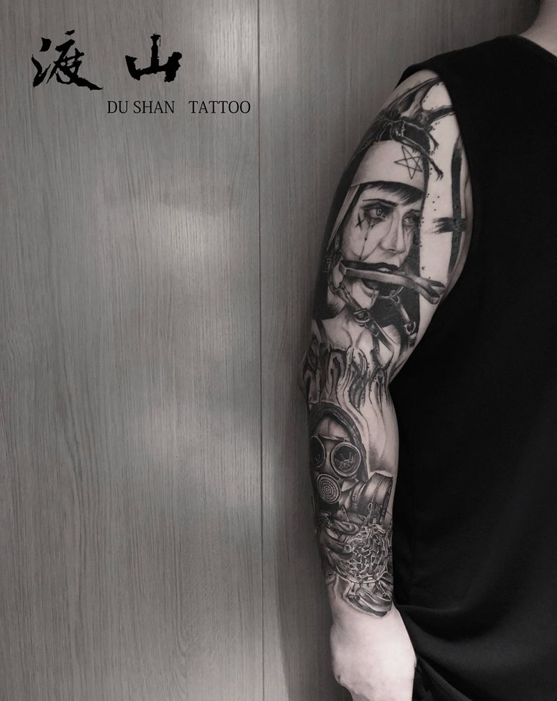 暗黑系纹身图片_手臂New School欧美写实暗黑系纹身图案