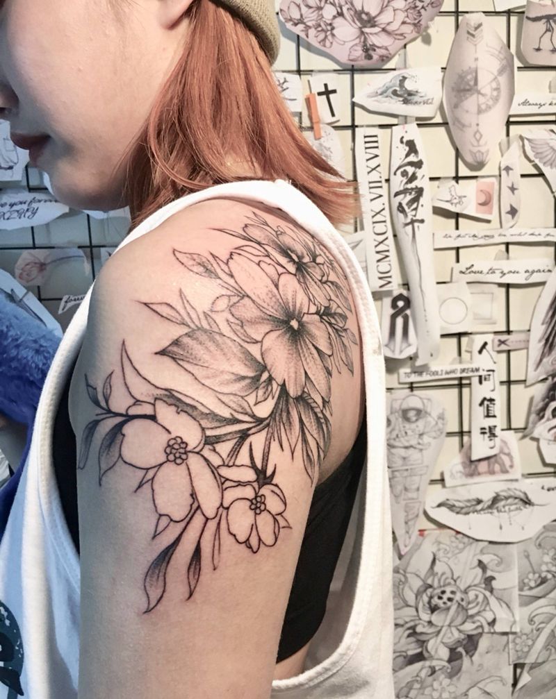 • 女性大花胸纹身_43张霸气漂亮的女性大花胸纹身图案作品