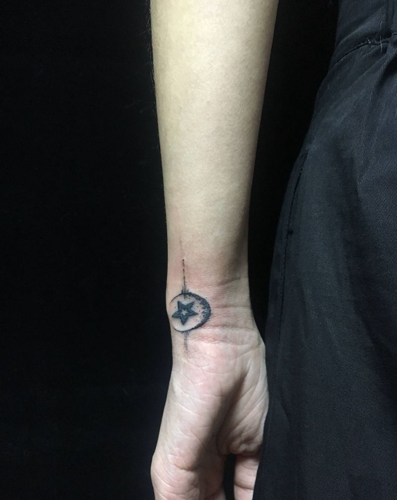 月亮星星纹身图片_手部修改纹身图案