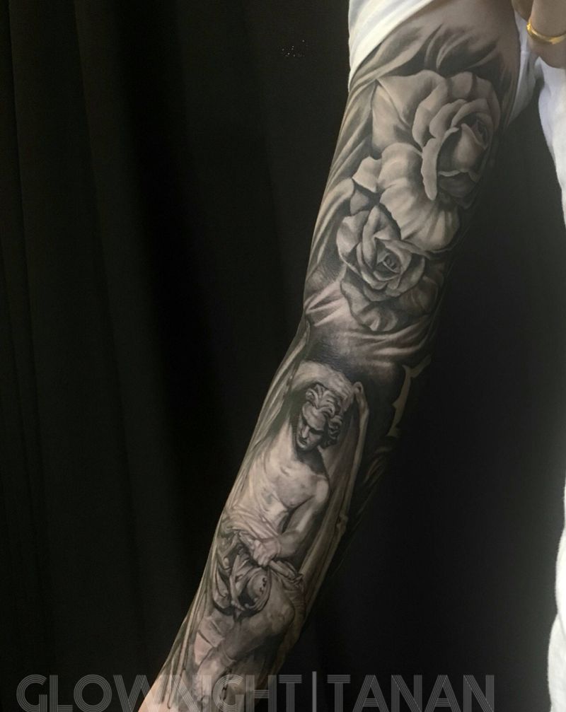 欧美写实花臂定制纹身图片_成品手臂欧美写实肖像人物纹身图案