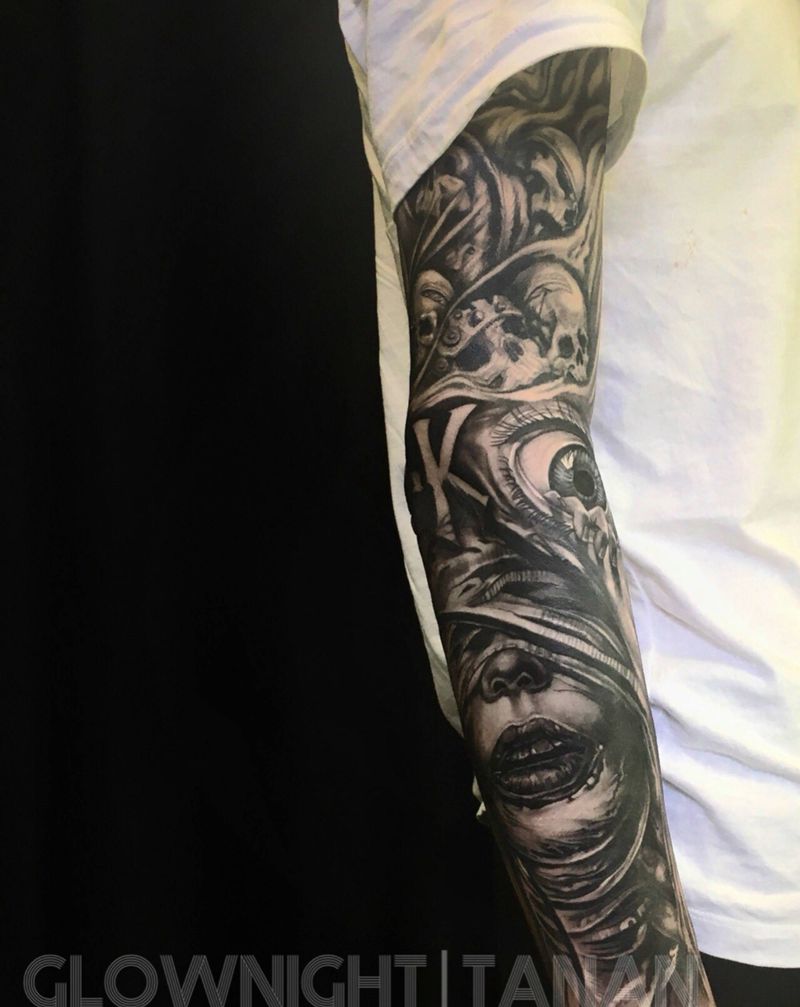 当前位置: 首页 >浙江省杭州市纹身店-刺刻工廠纹身图案>欧美写实花臂定制纹身图片_成品手臂欧美写实肖像人物纹身图案