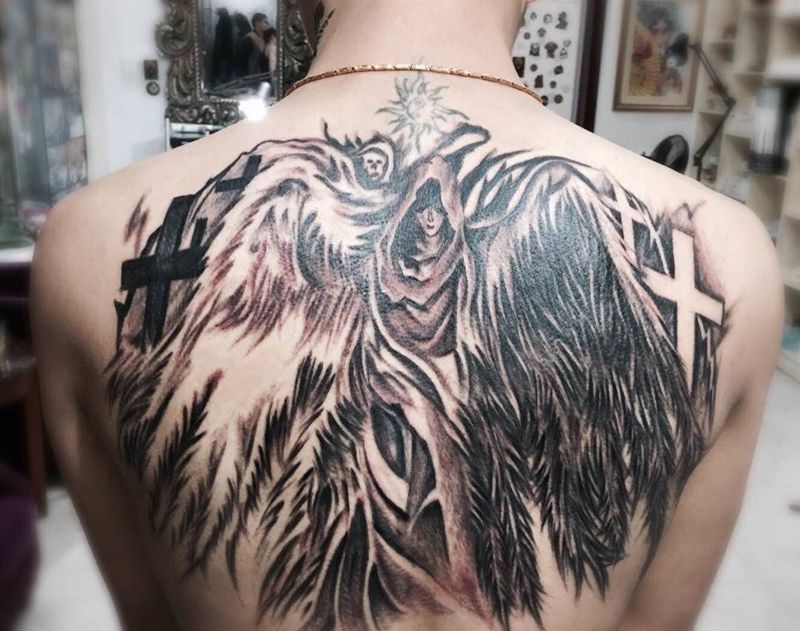 • 纹身吧推荐的披肩图腾半胛纹身图案作品展示