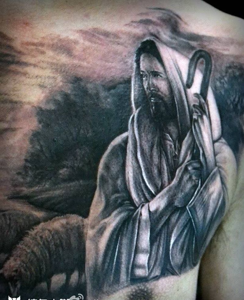 当前位置: 首页 >浙江省杭州市纹身店-纹人天下刺青会所纹身图案>耶稣 花胸纹身图片