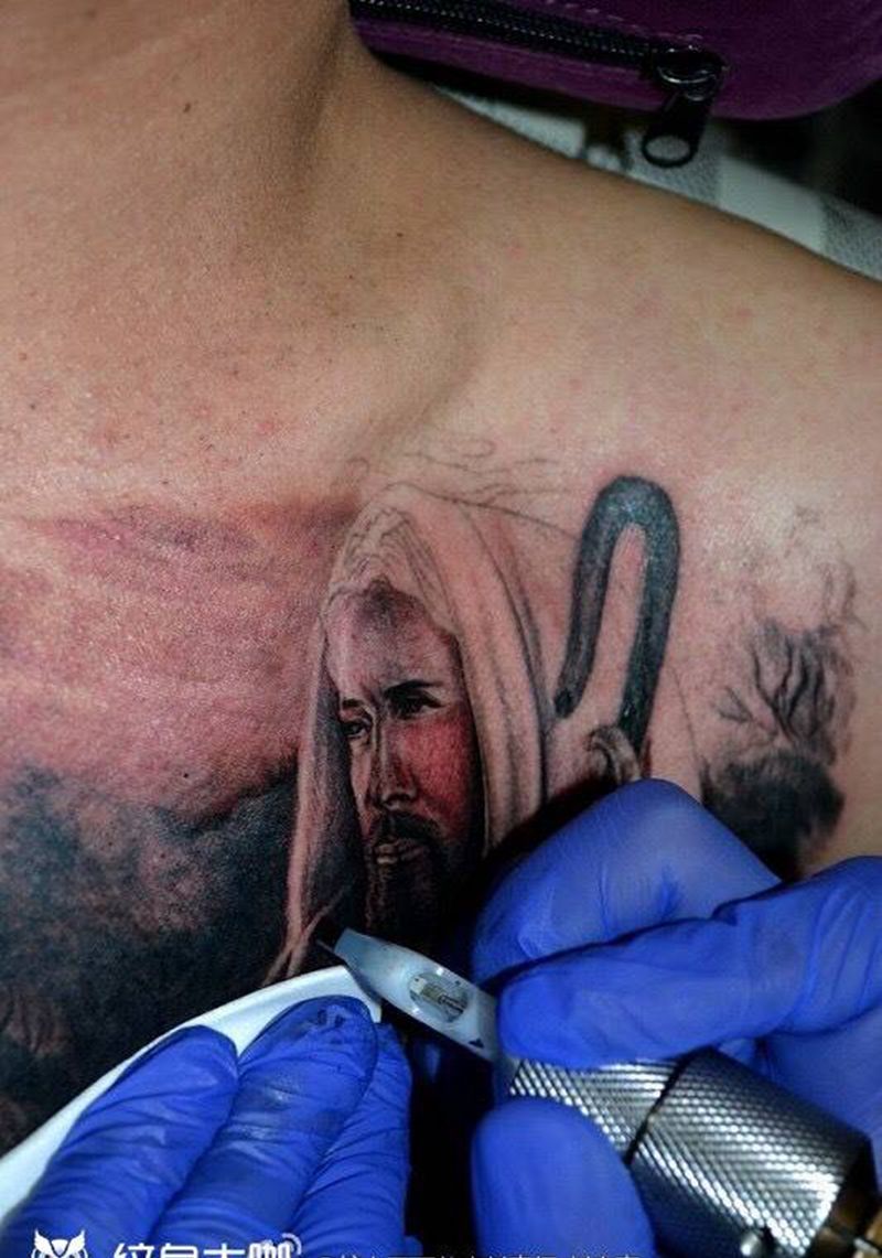 当前位置: 首页 >浙江省杭州市纹身店-纹人天下刺青会所纹身图案>花胸 耶稣牧羊纹身图片