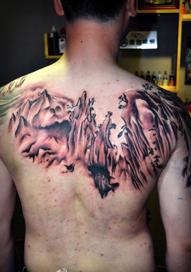 当前位置: 首页 >浙江省杭州市纹身店-纹人天下刺青会所纹身图案>山水画纹身纹身图片