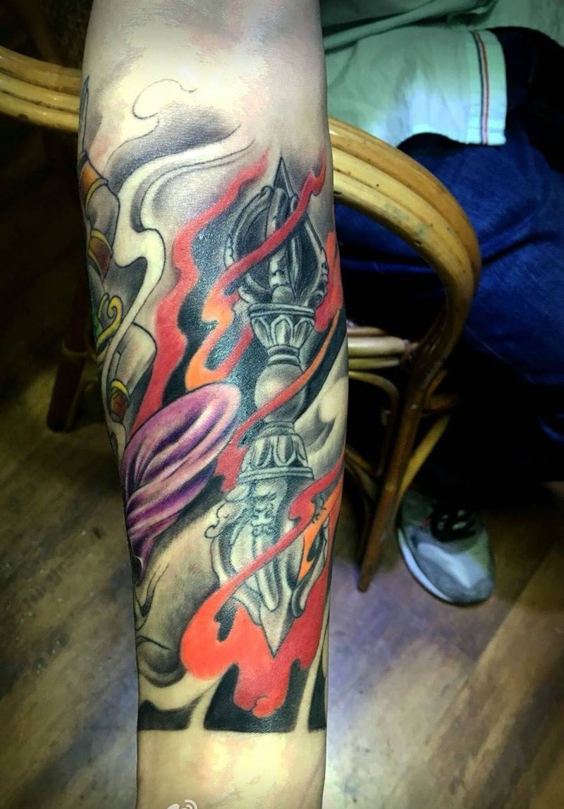 当前位置: 首页 >浙江省杭州市纹身店-纹人天下刺青会所纹身图案>象神包小臂纹身图片