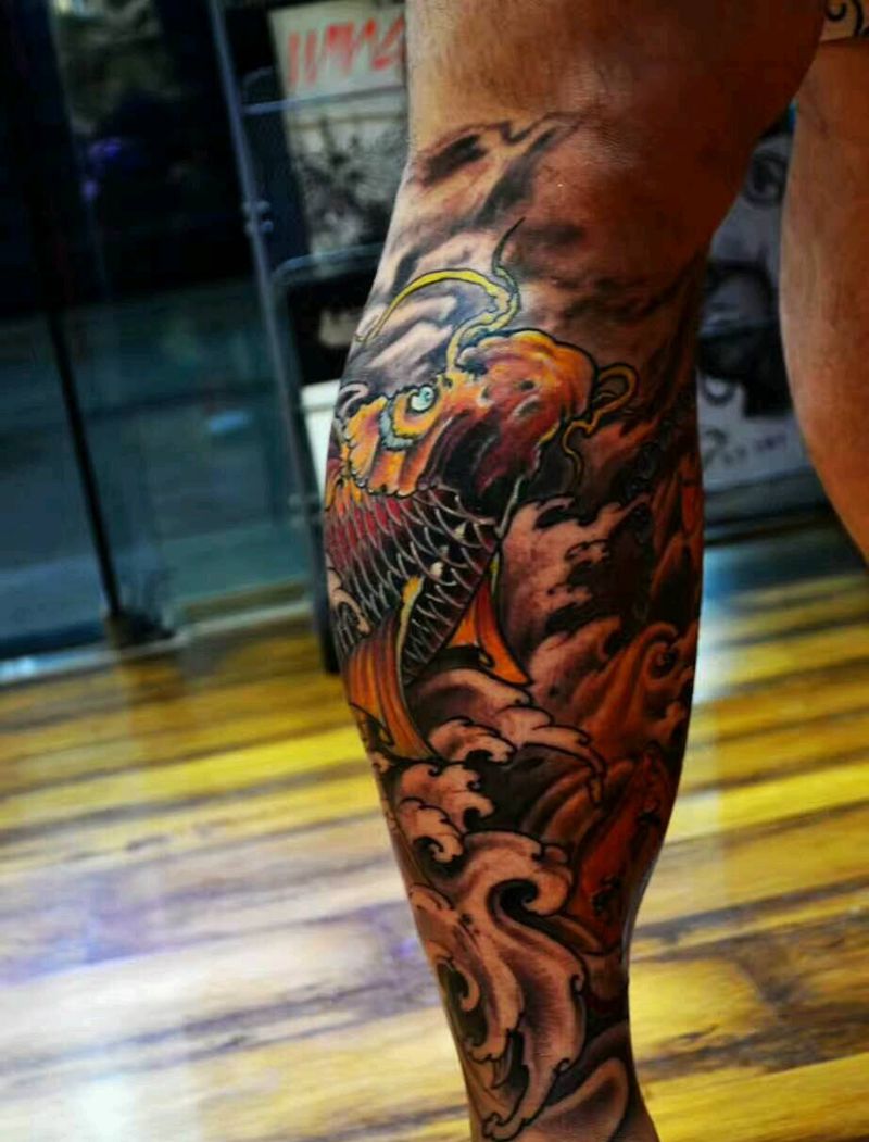 当前位置: 首页 >浙江省杭州市纹身店-纹人天下刺青会所纹身图案>鲤鱼 包小腿纹身图片