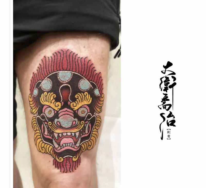 • T网红王老大花腿龙纹身图片_腿部新传统纹身图案