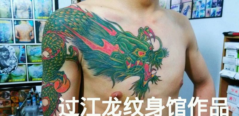 过江龙纹身馆纹身图片_传统清新写实颈部胸部手臂腿部动物植物情侣纹身图案