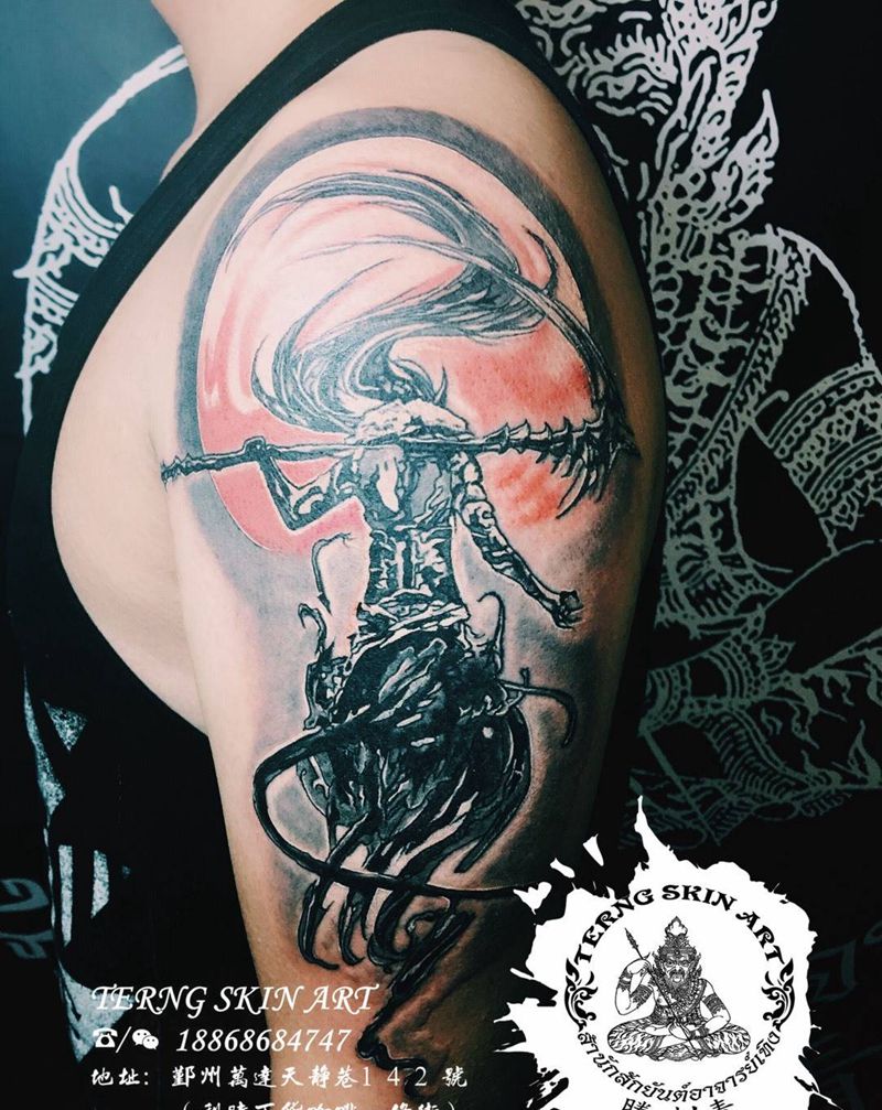 • 纹身吧推荐的披肩图腾半胛纹身图案作品展示