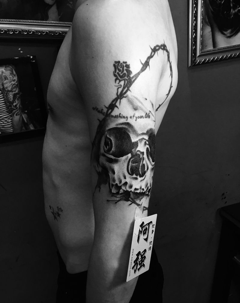当前位置: 首页 >浙江省温州市纹身店-温州阿强纹身纹身图案>手臂欧美骷髅头纹身纹身图片