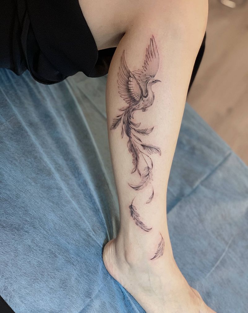 凤凰纹身图片_腿部新传统纹身图案