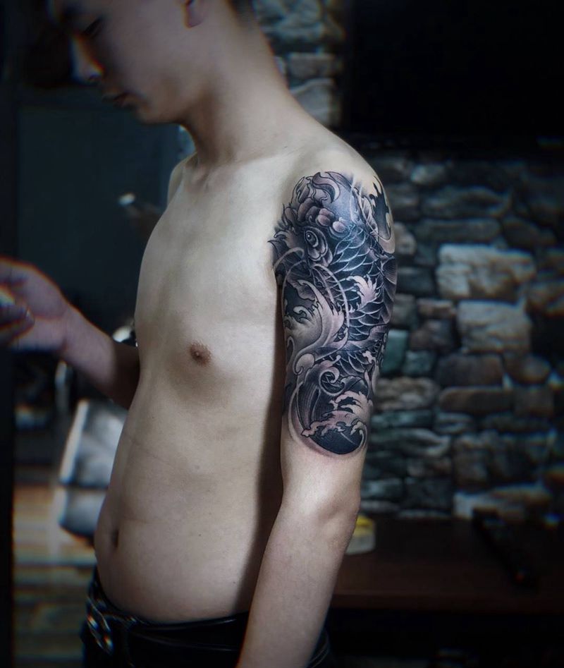 当前位置: 首页 >浙江省温州市纹身店-温州阿强纹身纹身图案>大臂鲤鱼纹身图片