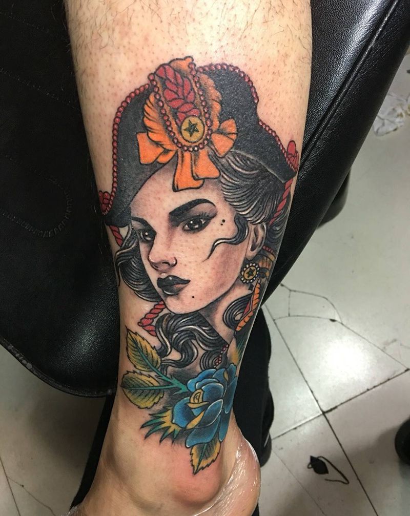 • T包小腿吹火男+阿多福纹身图片_腿部老传统新传统吹火男阿