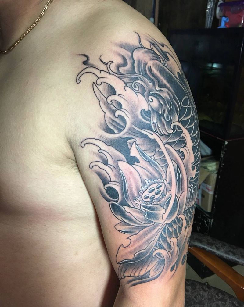 当前位置: 首页 >浙江省温州市纹身店-道格刺青纹身图案>大臂鲤鱼,纹身图片