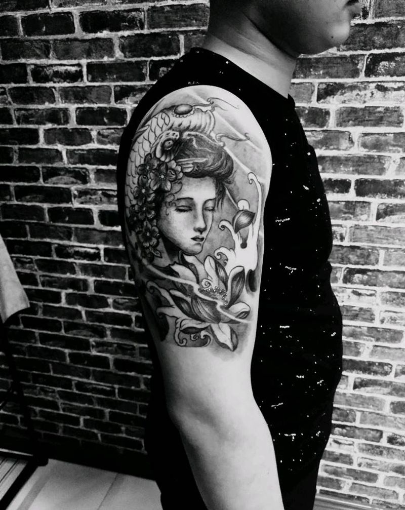 • 女性大花胸纹身_43张霸气漂亮的女性大花胸纹身图案作品