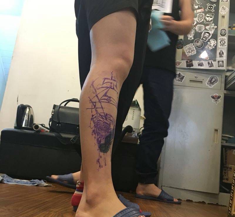 • T网红王老大花腿龙纹身图片_腿部新传统纹身图案