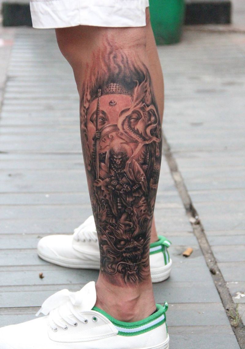 • T网红王老大花腿龙纹身图片_腿部新传统纹身图案