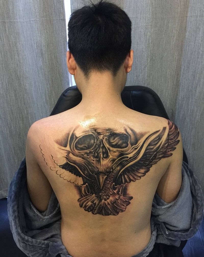 当前位置: 首页 >浙江省温州市纹身店-维一刺青纹身图案>暗黑鹰纹身图片