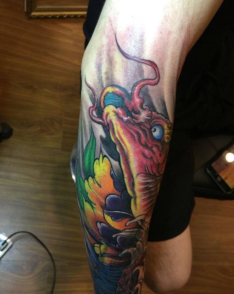 • T网红王老大花腿龙纹身图片_腿部新传统纹身图案