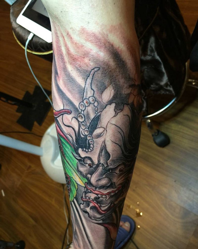 • T网红王老大花腿龙纹身图片_腿部新传统纹身图案