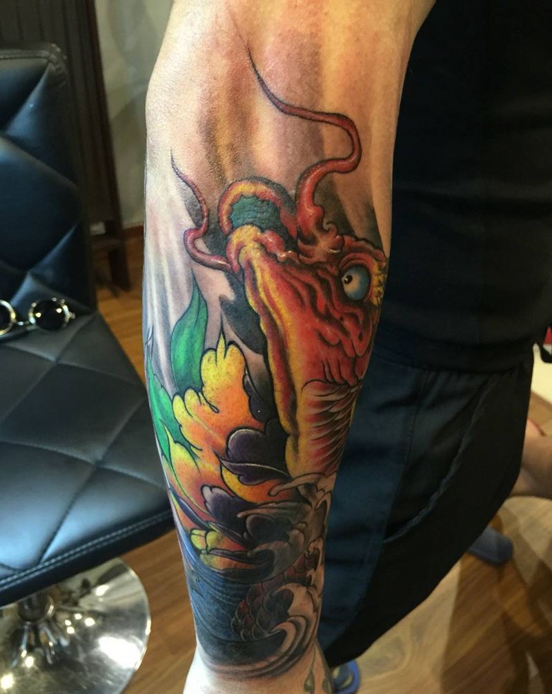 • T网红王老大花腿龙纹身图片_腿部新传统纹身图案