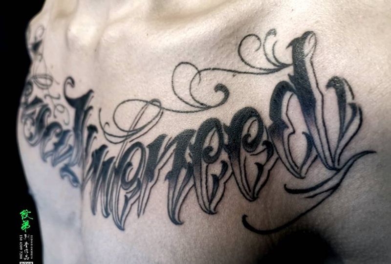 奇卡诺 花胸纹身图片_胸部花体字纹身图案