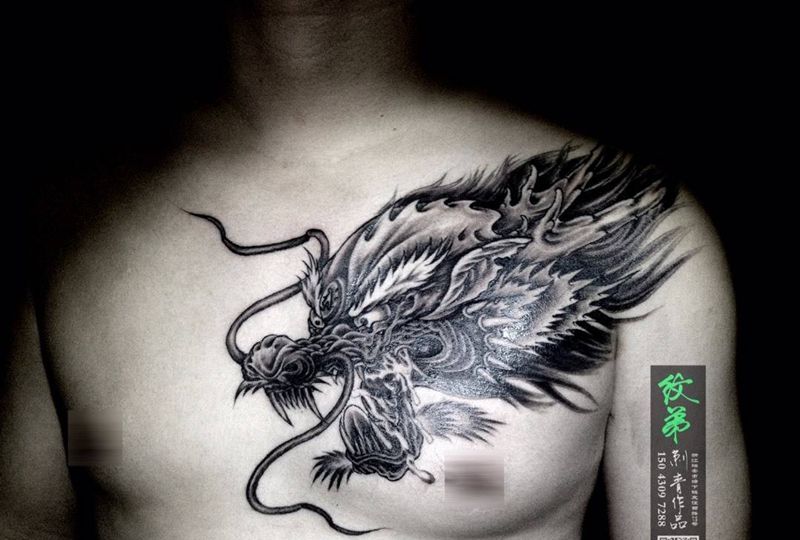 龙头三部曲纹身图片_胸部新传统纹身图案