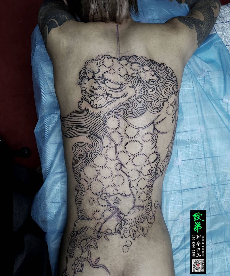 黑灰满背纹身图案