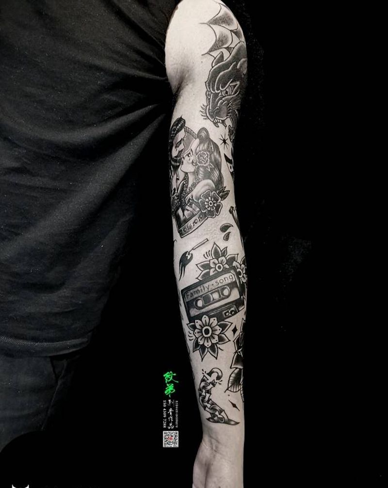 当前位置: 首页 >浙江省温州市纹身店-俺耀文身纹身图案>拼接花臂纹身图片_手臂Old School老传统纹身图案