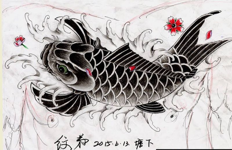 一条大黑鱼纹身图片_手稿胸部腹部腰部背部手臂腿部传统动物原创纹身图案