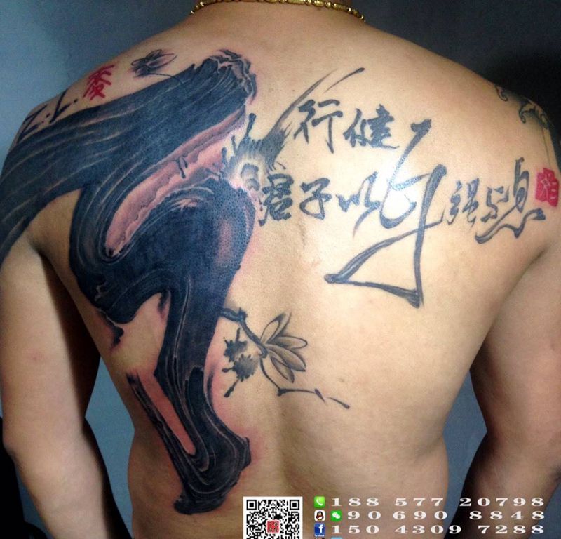 天行健,君子以自强不息。纹身图片_成品背部手臂传统书法字符纹身图案