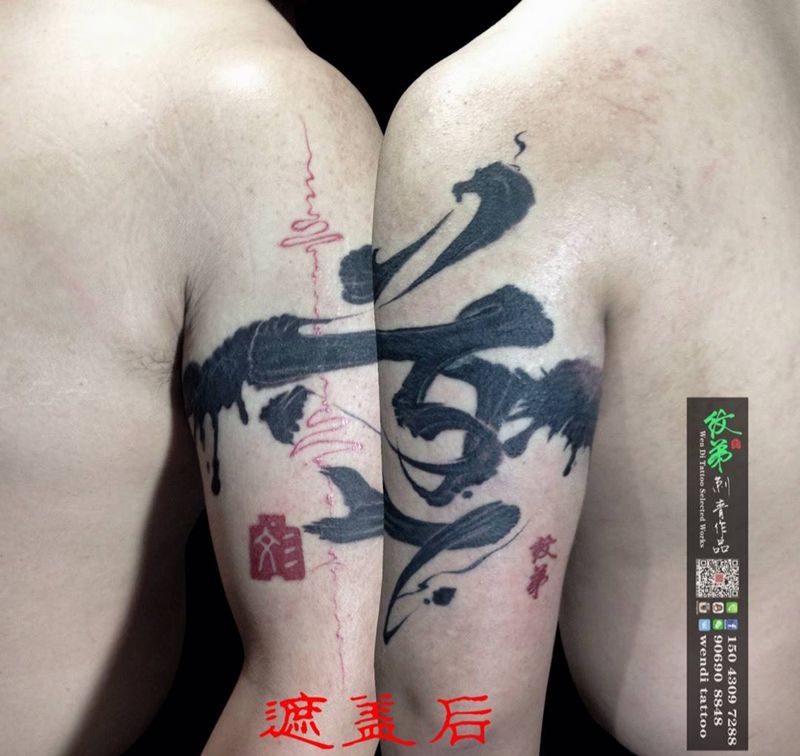 书法《道》遮盖失败的纹身!!纹身图片_成品手臂传统字符书法修改遮盖纹身图案
