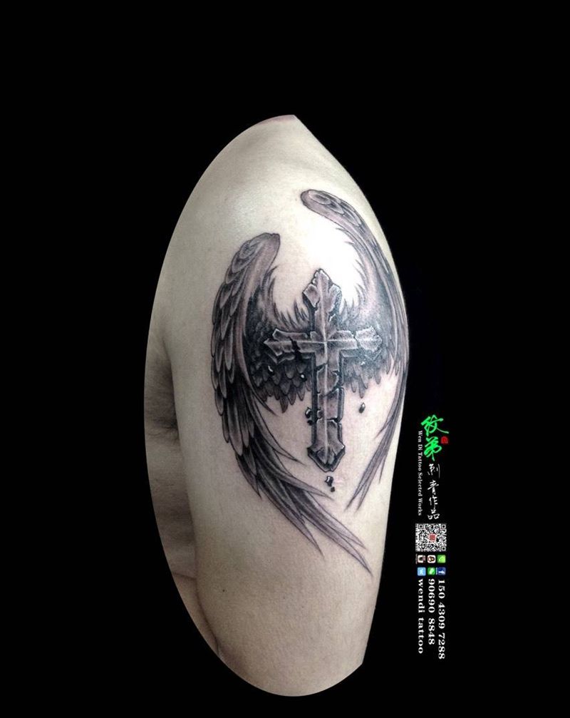 臂膀✟十字架纹身图片_成品手臂欧美宗教纹身图案