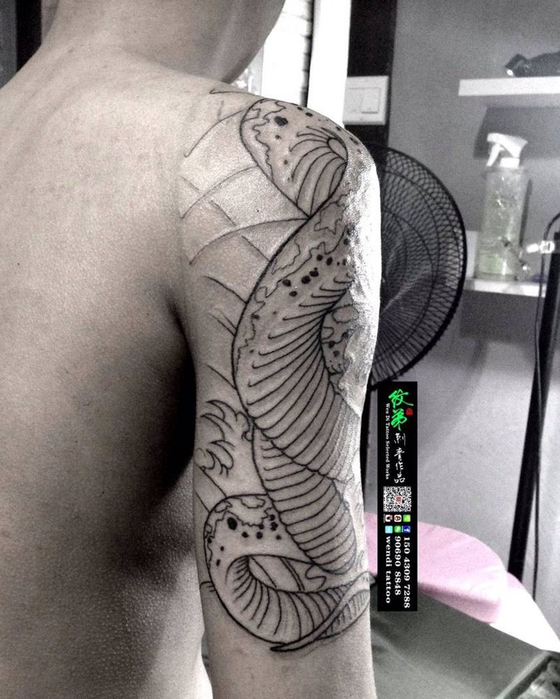 当前位置: 首页 >浙江省温州市纹身店-俺耀文身纹身图案>蛇 半甲 割线纹身图片_肩部手臂胸部传统动物纹身图案