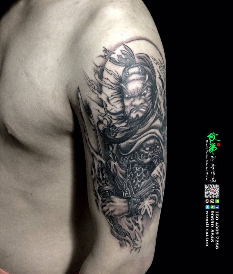 关公纹身图片_成品肩部手臂传统人物纹身图案